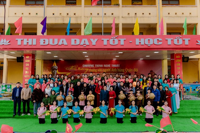 Trong buổi Lễ, các đại biểu cùng thầy trò nhà trường được xem chương trình nghệ thuật “Mái trường mang tên người Anh hùng Quân đội”gồm 3 chương: