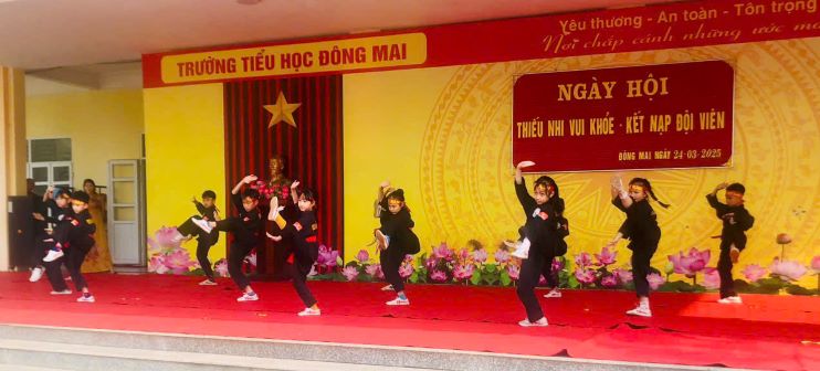 Sáng ngày 26/3, trong không gian rực rỡ cờ hoa, thầy và trò trường Tiểu học Đông Mai đã có một buổi lễ long trọng và đầy phấn khởi. Mở đầu chương trình, các em học sinh đã mang đến những tiết mục văn nghệ đặc sắc, với những bài hát, điệu múa ca ngợi quê hương, đất nước và tình yêu tuổi thơ. Những tiếng vỗ tay vang dội của khán giả đã tiếp thêm động lực cho các tiết mục biểu diễn, tạo nên không khí vô cùng sôi động.