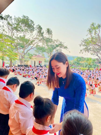 Một trong những nội dung quan trọng của buổi lễ là Lễ kết nạp Đội viên mới. Trong niềm vinh dự và tự hào, các em học sinh tiêu biểu đã được cô Hiệu trưởng và cô Hiệu phó trực tiếp đeo khăn quàng đỏ – biểu tượng cao quý của người Đội viên Thiếu niên Tiền phong Hồ Chí Minh. Khoảnh khắc đó chắc chắn sẽ trở thành kỷ niệm đáng nhớ trong quãng đời học sinh của các em.