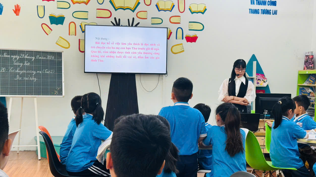 Những câu chuyện được kể trong thư viện không chỉ làm giàu vốn từ của các em mà còn giúp bài học trở nên sinh động và gần gũi hơn, khơi dậy niềm đam mê học tập và khám phá.