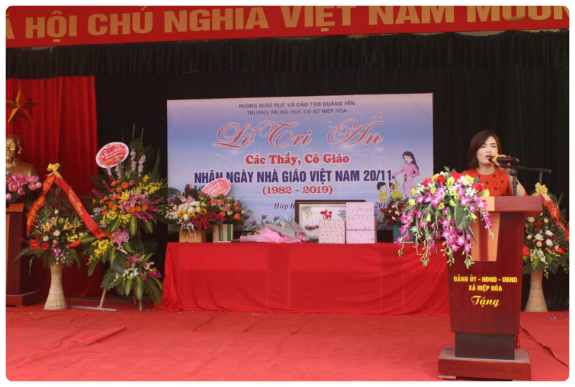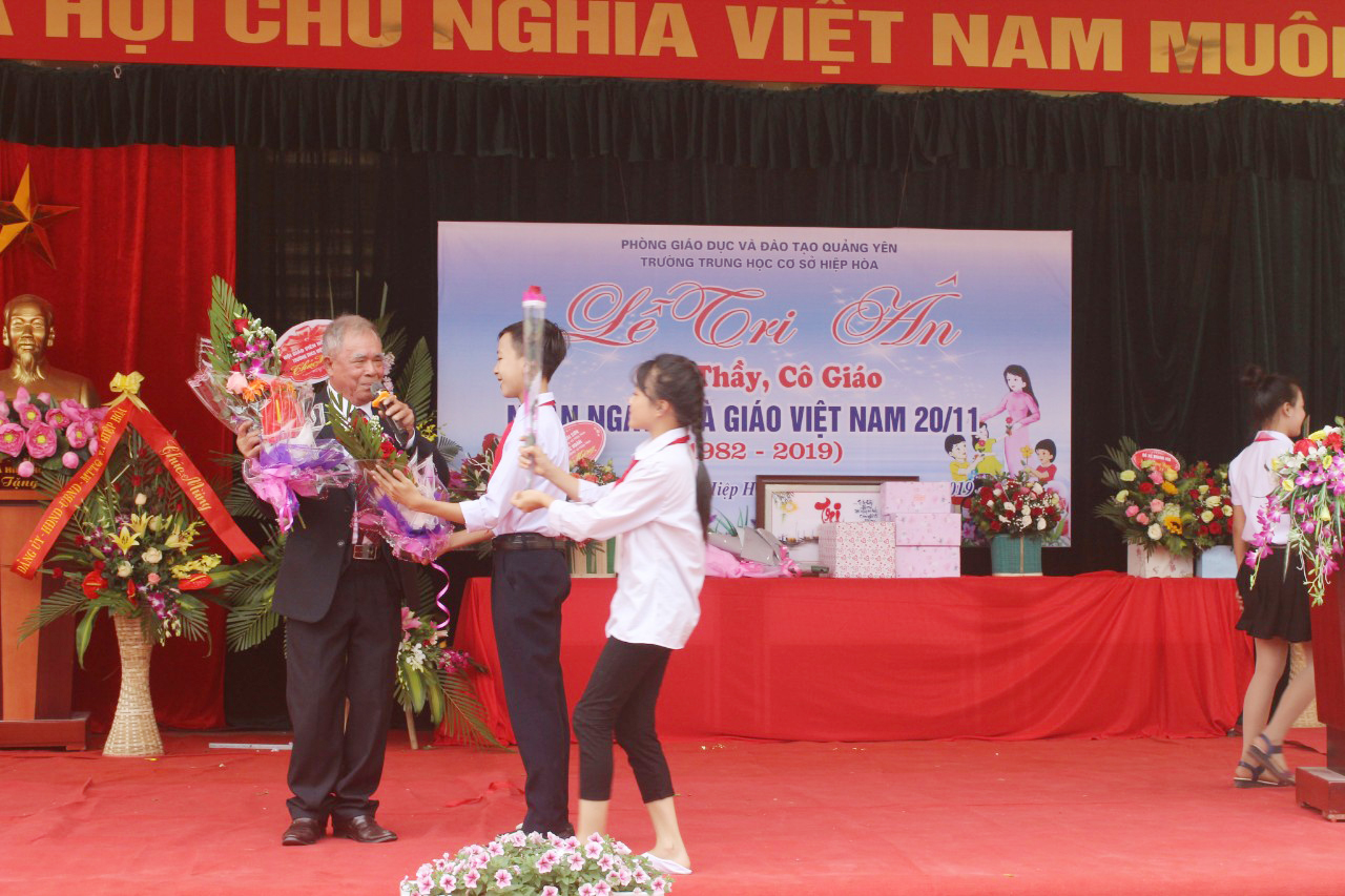 Hoà chung với khí thế tưng bừng, phấn khởi của ngành giáo dục cả nước kỉ niệm ngày Nhà giáo Việt Nam, thực hiện kế hoạch số 719/ KH – PGD ĐT ngày 06/11/2019 của Phòng GD&ĐT Thị xã Quảng Yên về kế hoạch tổ chức các hoạt động chào mừng ngày nhà giáo Việt Nam 20/11, hôm nay ngày 20/11/2019 tại trường THCS Hiệp Hoà long trọng tổ chức LỄ TRI ÂN thầy, cô giáo nhân kỷ niệm 37 năm ngày Nhà giáo Việt Nam (20/11/1982 – 20/11/2019)