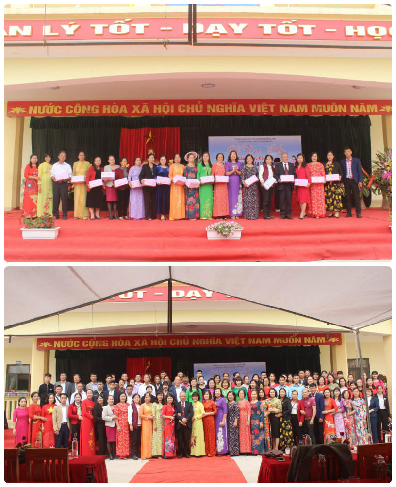 Saubài tri ân của em Đinh Thị Liên, đại diện học sinh các khối lớp 6,7, 8, 9 lần lượt lên dâng tặng các thầy cô giáo trong trường những bó hoa tươi thắm. Nhà trường cũng dành tặng những món quà nhỏ gửi tới các thầy cô nguyên là cán bộ, giáo viên trong trường, nay đã về nghỉ với tấm lòng tri ân sâu sắc nhất.