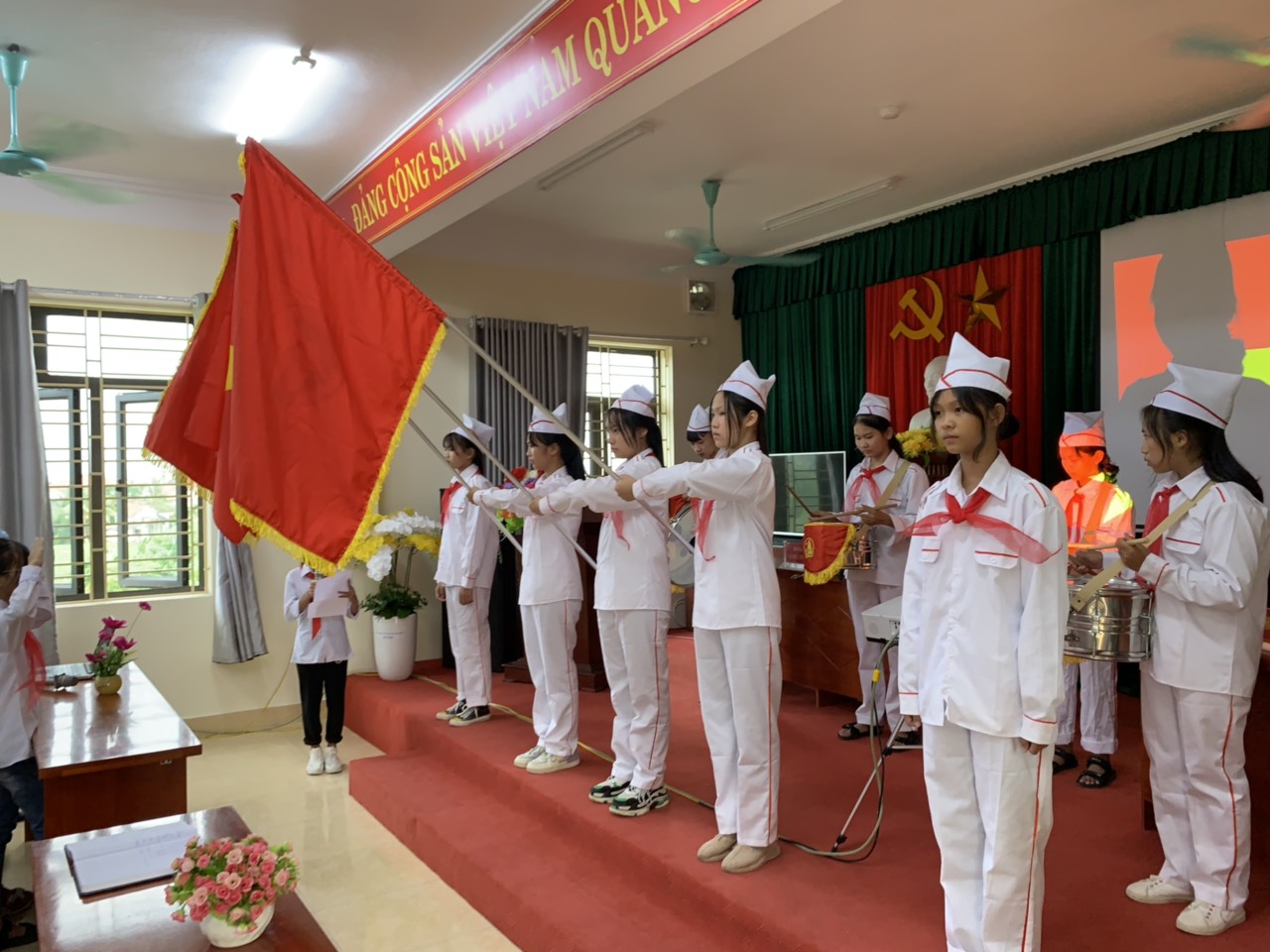 Về dự và chỉ đạo đại hội có thầy Nguyễn Quốc Khương - Hiệu trưởng nhà trường, thầy Nguyễn Đông - Tổng phụ trách đội, cùng các thầy cô giáo và 48 đội viên tiêu biểu đến từ 16 chi đội cũng về dự đông đủ.