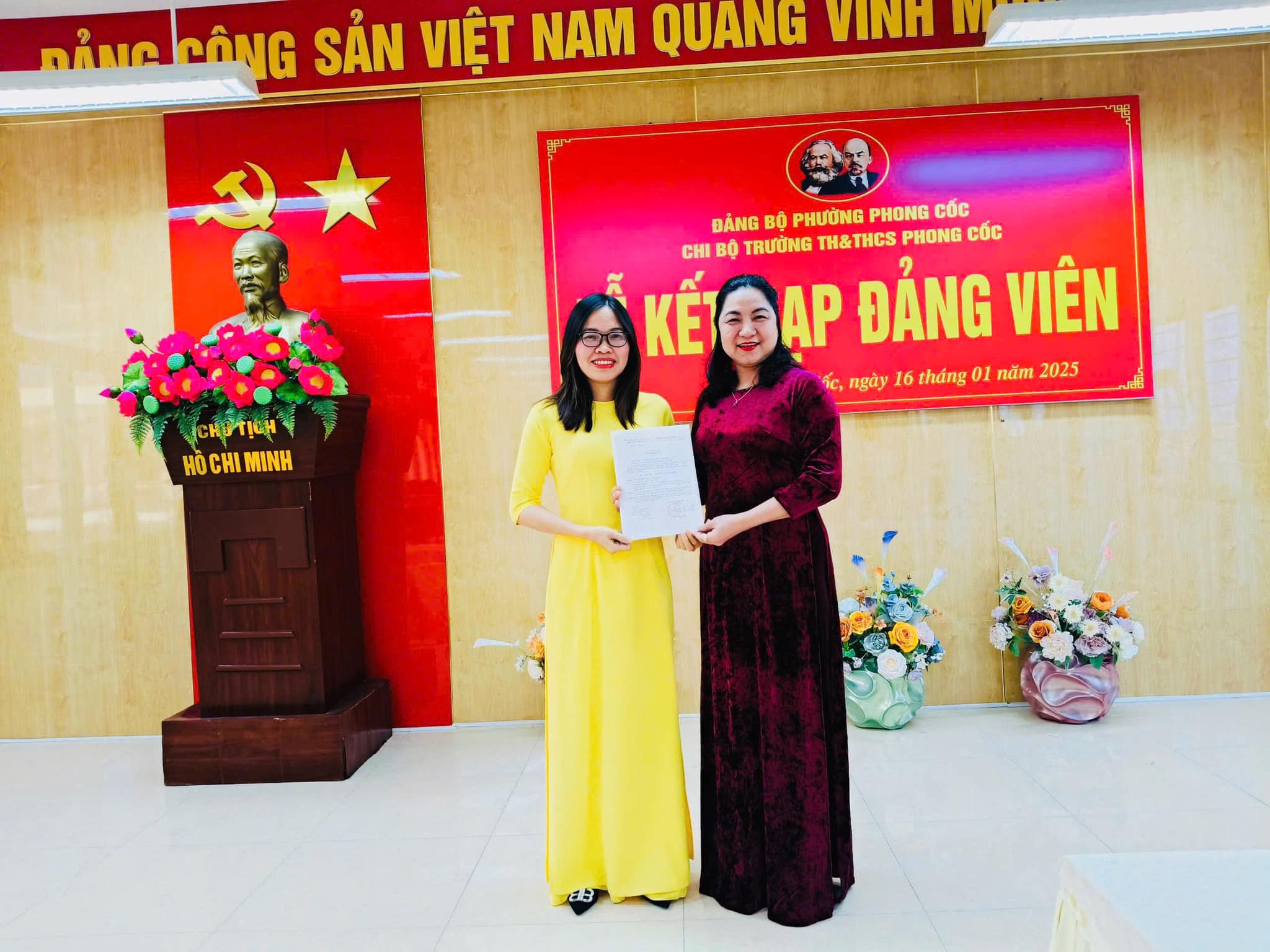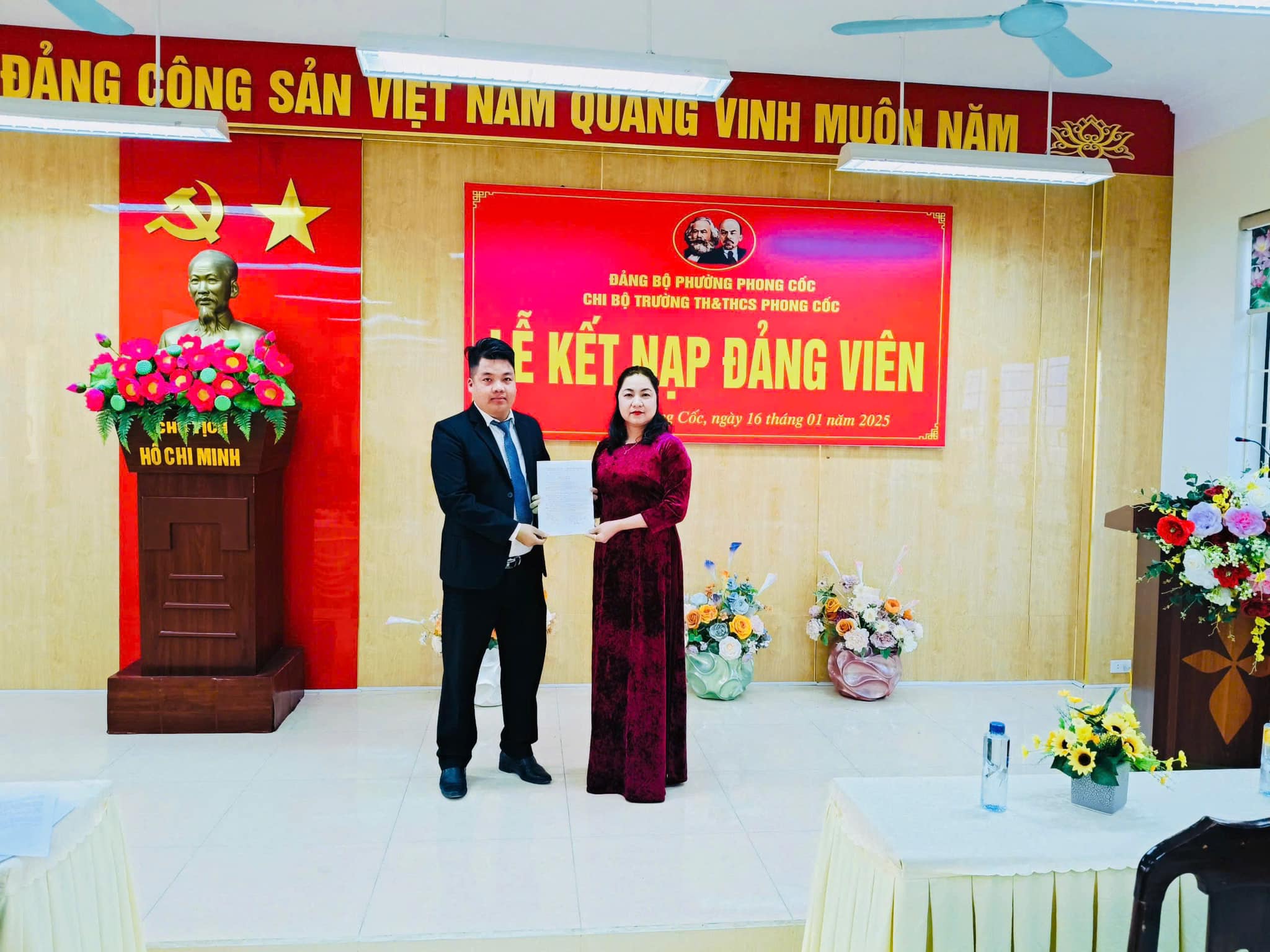 - Chiều ngày 16/01/2025, Chi bộ trường TH&THCS Phong Cốc đã tổ chức Lễ kết nạp đảng viên cho 2 quần chúng ưu tú của nhà trường.