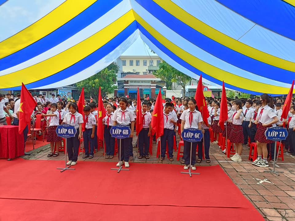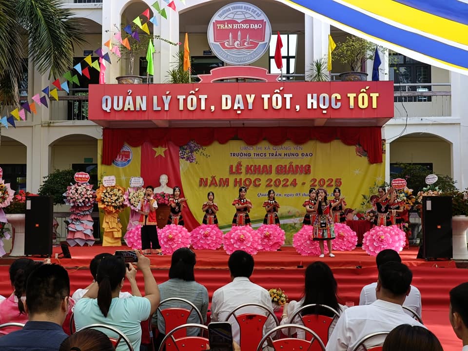 Buổi lễ có sự tham dự của ông Hoàng Duy Đông, Chủ tịch UBND phường Quảng Yên tới dự, cùng các thầy cô giáo và hơn 590 học sinh của trường. Trong bài phát biểu khai giảng, cô Vũ Thị Giang - Hiệu trưởng nhà trường đã đọc diễn văn khai giảng và nhấn mạnh tầm quan trọng của việc đổi mới sáng tạo và nâng cao chất lượng giáo dục, đồng thời khuyến khích học sinh nỗ lực học tập và rèn luyện để đạt được những thành tích cao trong năm học mới. Buổi lễ kết thúc với tiếng trống khai trường vang dội, mở ra một năm học mới đầy hứa hẹn và thành công.