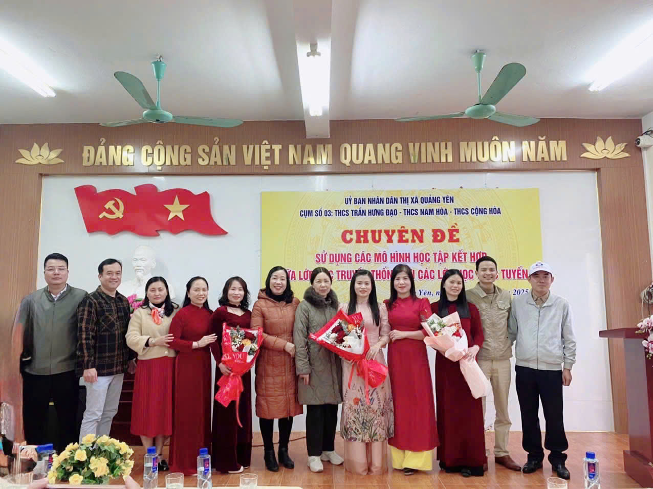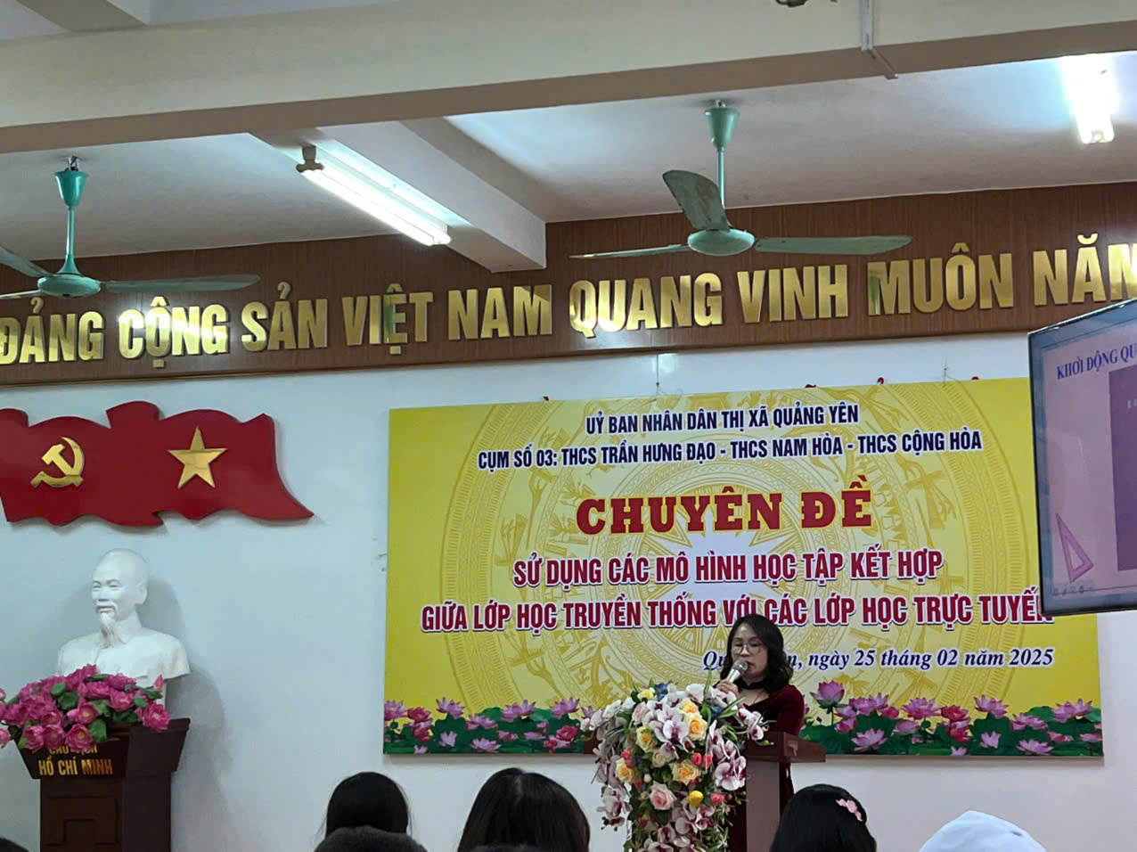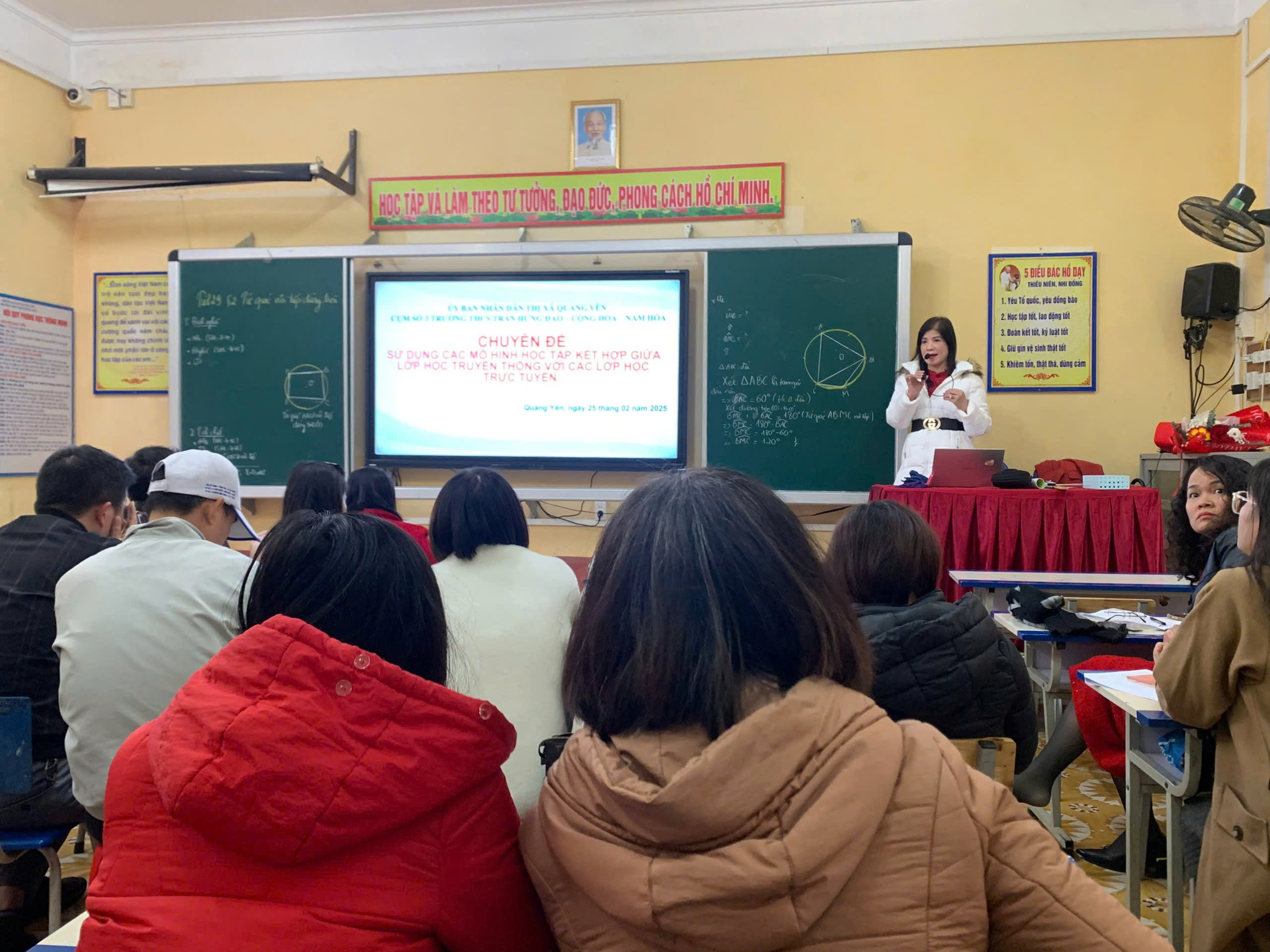 Với mục tiêu nâng cao chất lượng dạy học, ứng dụng hiệu quả công nghệ số vào giảng dạy và học tập đáp ứng yêu cầu đổi mới giáo dục, góp phần thực hiện hiệu quả Chương trình GDPT 2018, ngày 25 tháng 02 năm 2025 tại trường THCS Trần Hưng Đạo, cụm trường số 03 gồm các trường THCS Trần Hưng Đạo, Cộng Hoà, Nam Hoà đã tổ chức thành công chuyên đề với nội dung: “Sử dụng các mô hình học tập kết hợp giữa lớp học truyền thống với các lớp học trực tuyến.”