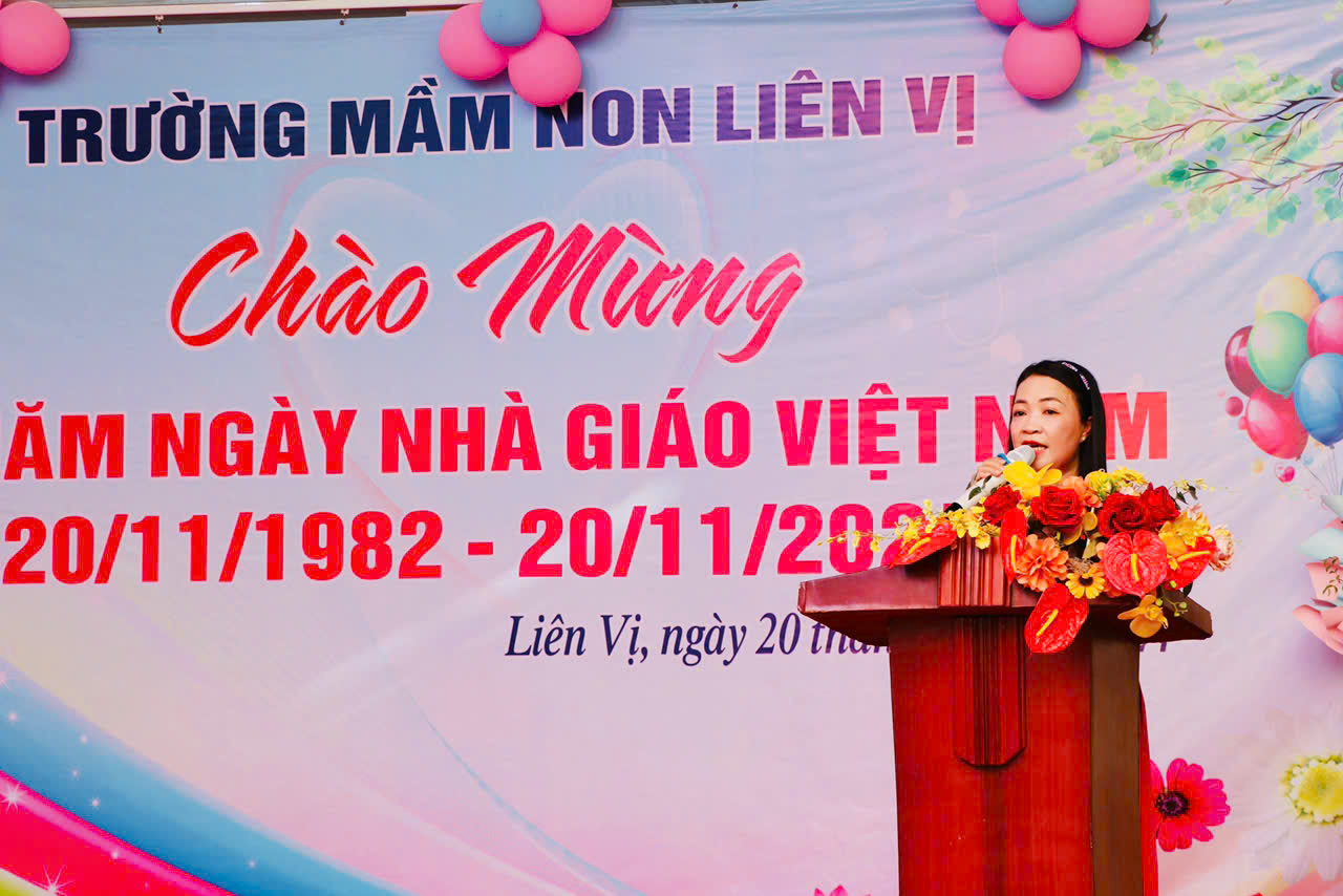 Hoà trong không khí tưng bừng, vui tươi, phấn khởi của cả nước chào mừng ngày Nhà giáo Việt Nam. Chiều ngày 20/11/2024, trường mầm non Liên Vị long trọng tổ chức kỷ niệm 42 năm ngày Nhà giáo Việt Nam 20/11/1982 - 20/11/2024, nhằm đẩy mạnh các phong trào thi đua, các hoạt động văn hóa, văn nghệ tạo không khí thi đua sôi nổi trong cán bộ, công chức, viên chức, nhà giáo và học sinh lập thành tích chào mừng ngày nhà giáo Việt Nam. Thông qua các hoạt động để tiếp tục nâng cao nhận thức, củng cố lòng tự hào, yêu ngành, yêu nghề, nâng cao ý thức trách nhiệm, phẩm chất đạo đức của mỗi nhà giáo; phát huy truyền thống “Tôn sư trọng đạo”, “Uống nước nhớ nguồn” trong học sinh, đề cao trách nhiệm của Nhà giáo trong sự nghiệp giáo dục; tạo sự đồng thuận của xã hội trong các hoạt động giáo dục; khẳng định những đóng góp của ngành đối với sự phát triển kinh tế - xã hội. Và tri ân, tôn vinh những nỗ lực, đóng góp của đội ngũ nhà giáo trong sự nghiệp phát triển giáo dục và đào tạo; bồi dưỡng và nêu cao lòng tự hào, yêu ngành, yêu nghề cho cán bộ, giáo viên, nhân viên nhà trường; nâng cao vai trò, trách nhiệm và khẳng định sự đóng góp to lớn của đội ngũ nhà giáo đối với sự nghiệp giáo dục và đào tạo; động viên, khích lệ toàn thể cán bộ, giáo viên, nhân viên vượt qua khó khăn hăng hái thi đua “quản lý tốt, dạy tốt, học tốt” từng bước nâng cao chất lượng giáo dục, xây dựng đội ngũ nhà giáo, cán bộ quản lý vững mạnh quyết tâm thực hiện thắng lợi nhiệm vụ năm học 2024-2025.