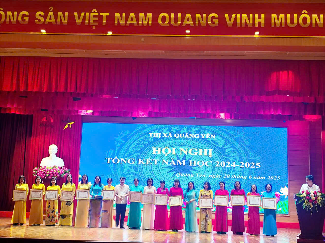 👏 Đặc biệt, có 9 cá nhân được công nhận danh hiệu Chiến sĩ thi đua cơ sở, và 01 cá nhân được Chủ tịch UBND Thị xã Quảng Yên tặng Giấy khen vì thành tích xuất sắc trong năm học 2024–2025.