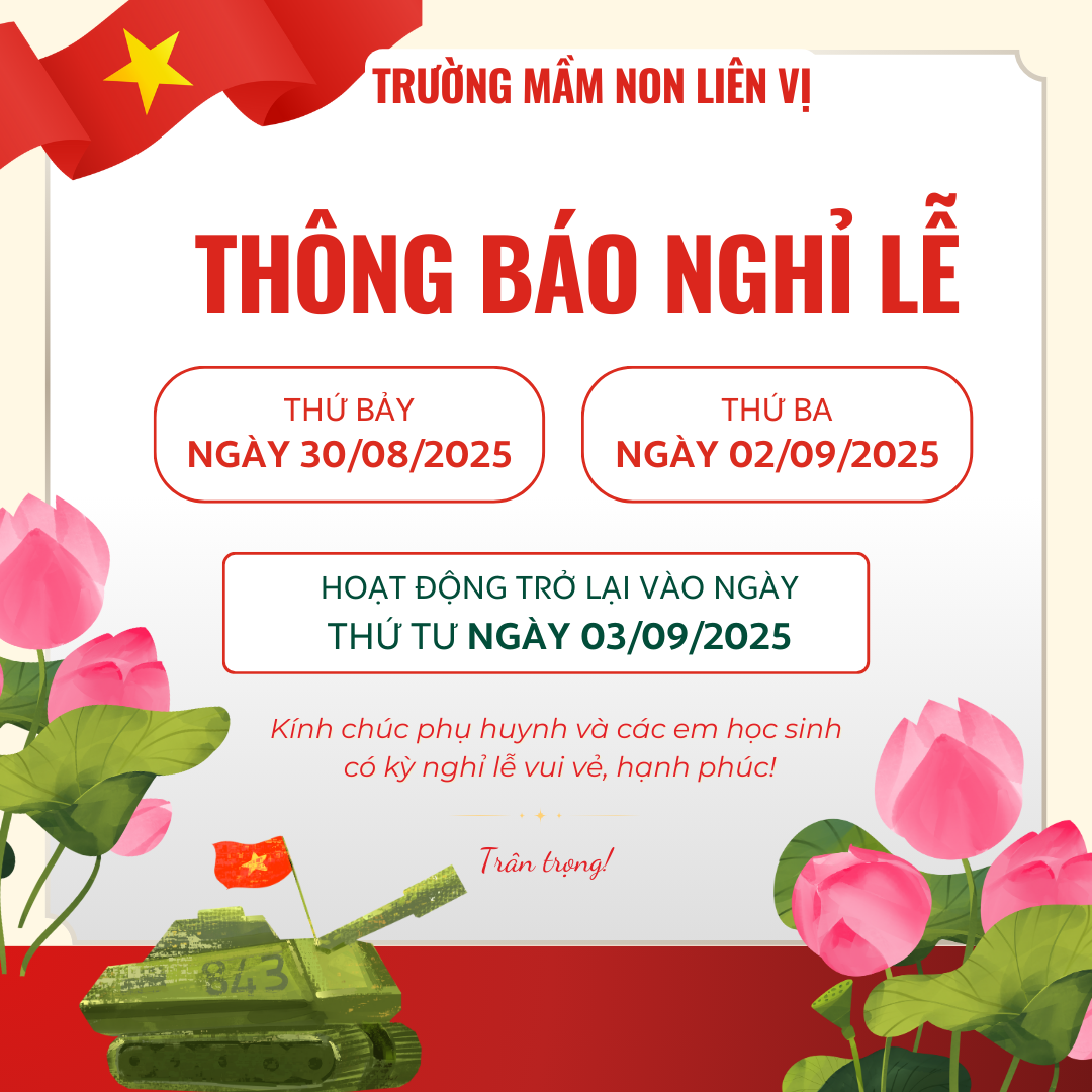 TRƯỜNG MẦM NON LIÊN VỊ THÔNG BÁO NGHỈ LỄ QUỐC KHÁNH 2/9