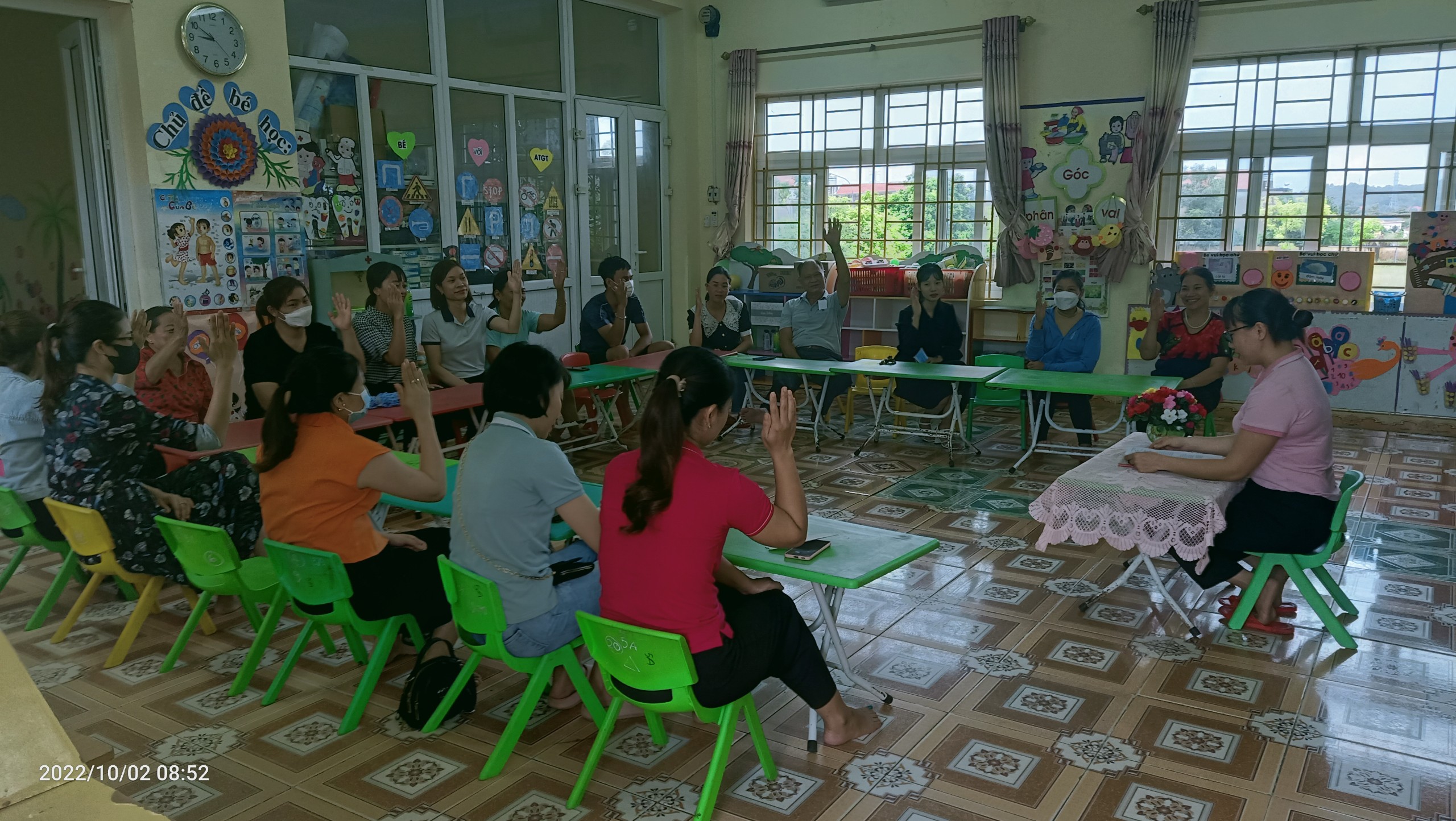 Sau cuộc họp tập thể cán bộ, giáo viên, nhân viên, hội đồng nhà trường ngày 01/10/2022 và cuộc họp Ban đại diện cha mẹ học sinh trường ngày 01/10/2022, đồng chí Nguyễn Thị Lý - Phó hiệu trưởng nhà trường đã triển khai, đề xuất tổ chức các dịch vụ phục vụ, hỗ trợ hoạt động giáo dục dụ kiến thực hiện trong năm học 2022 - 2023. thì Sáng ngày 02/10/2022 các lớp đã tiến hành tổ chức họp toàn thể cha mẹ học sinh. Kết quả cuộc họp: 100% phụ huynh đồng ý các nội dung triển khai trong cuộc họp theo kế hoạch phương hướng thực hiện của nhà trường.