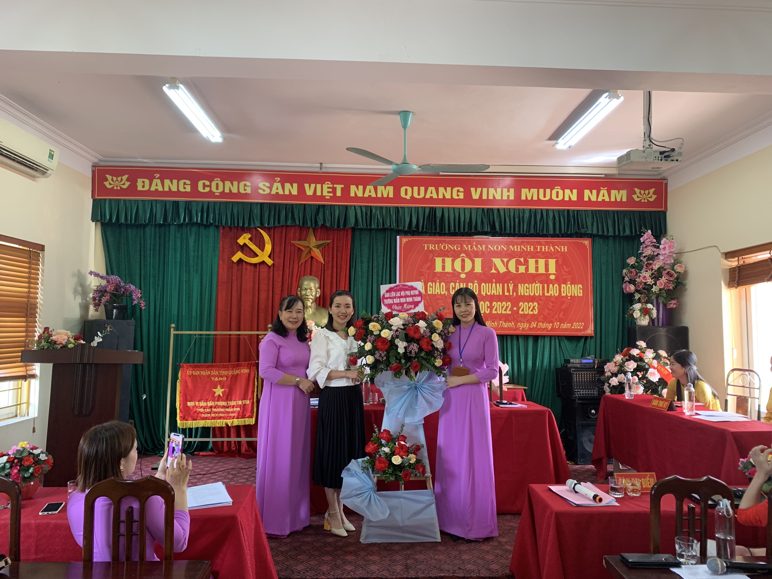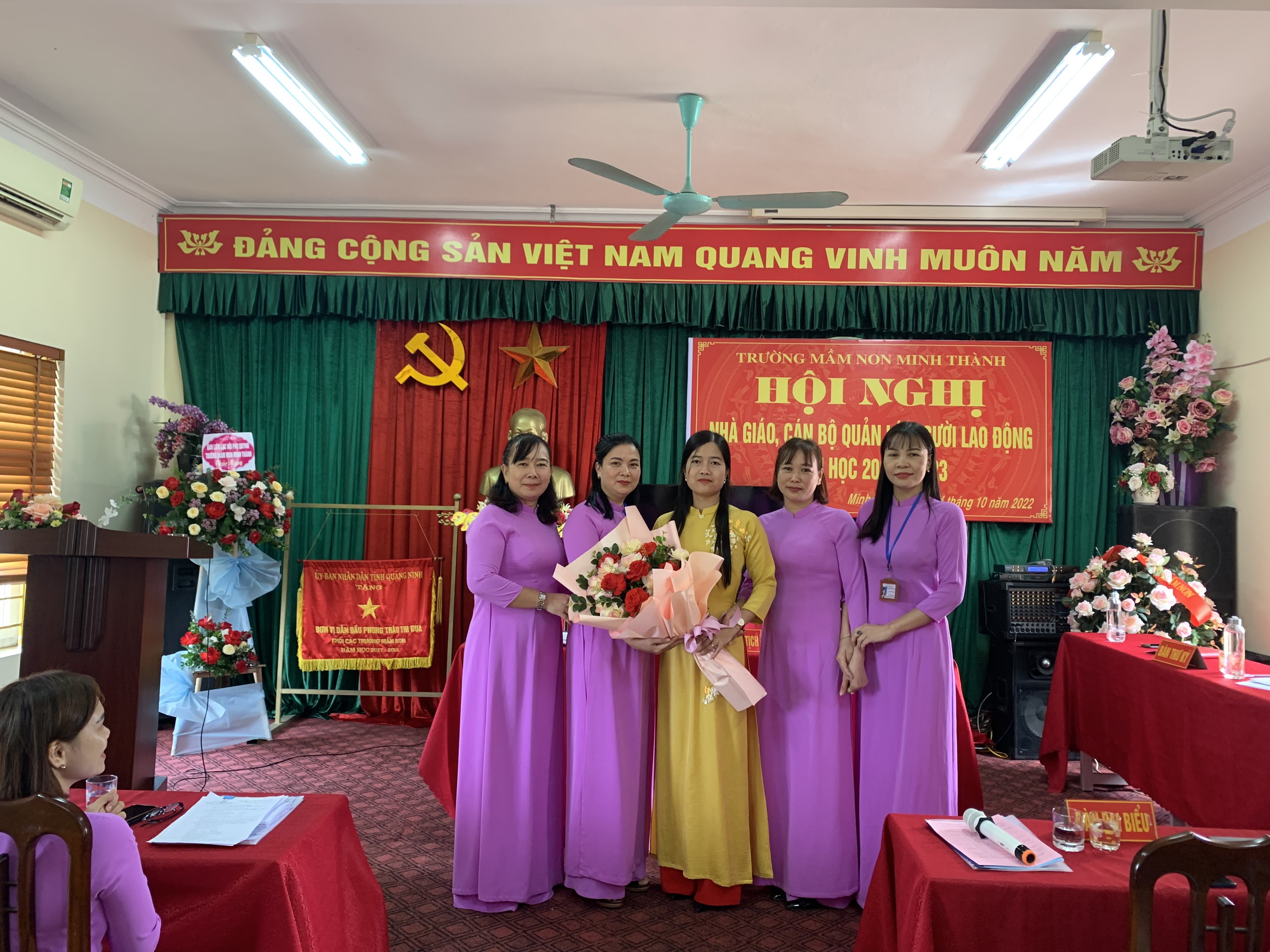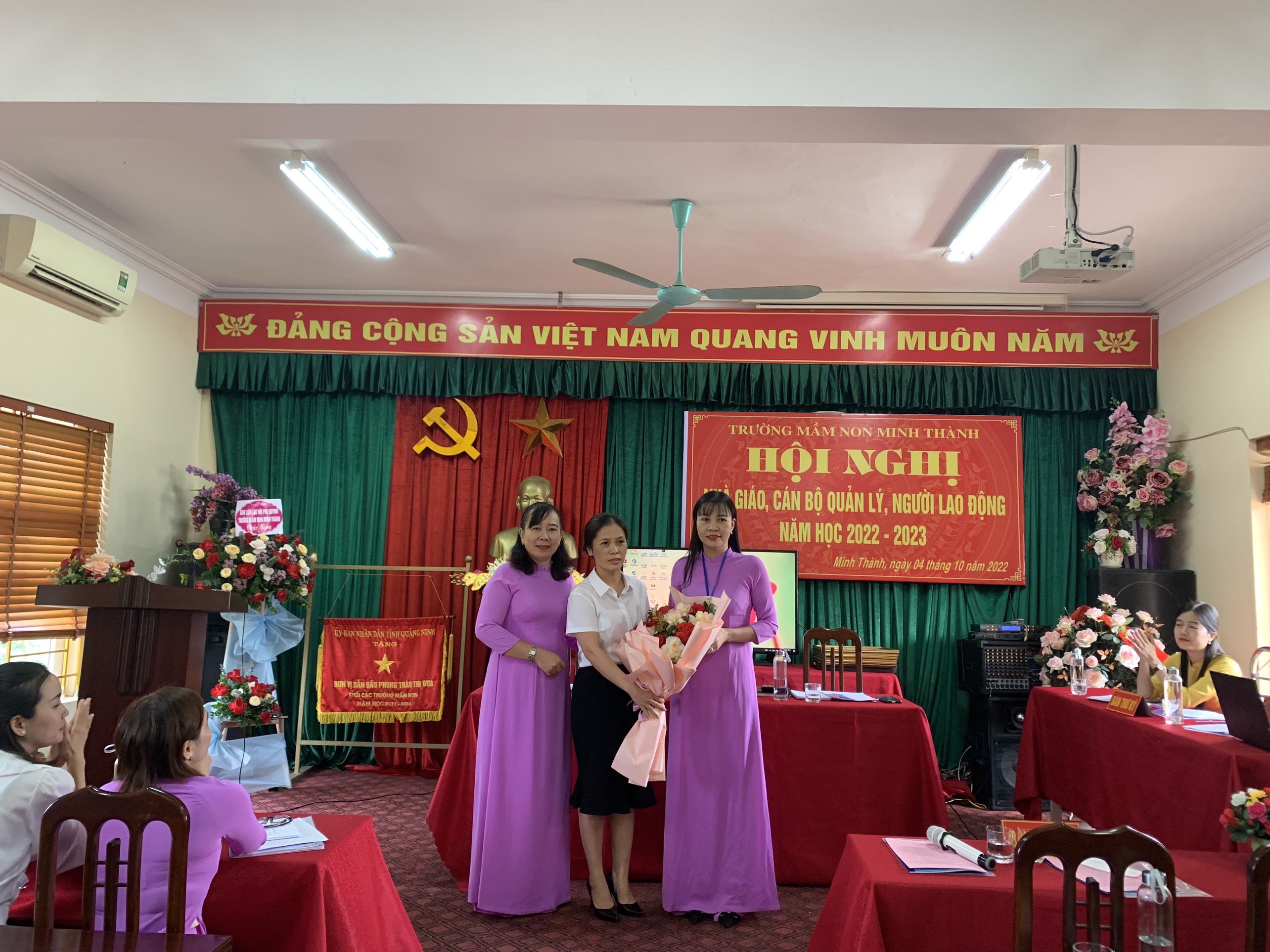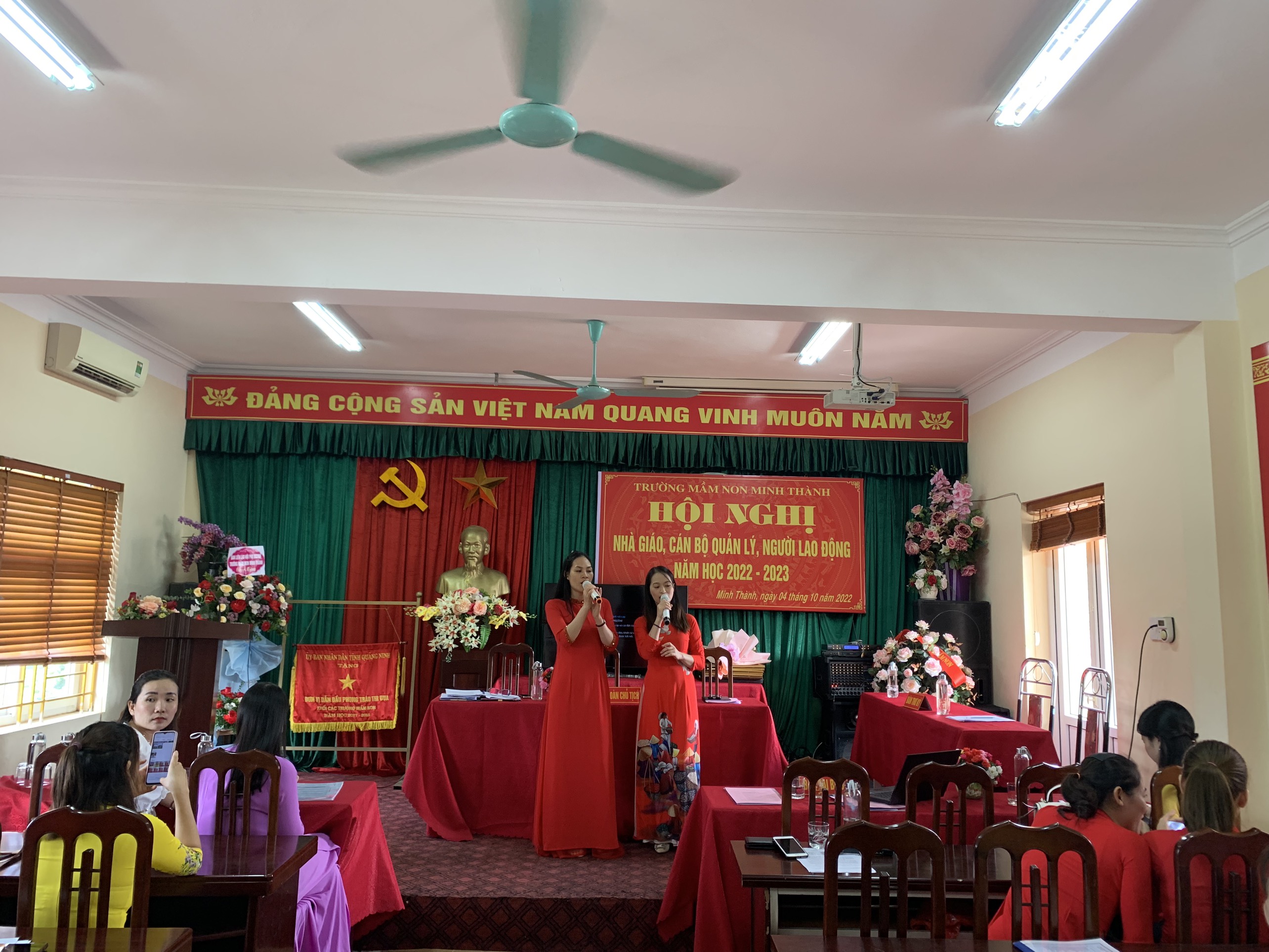 Thực hiện theo kế hoạch, ngày 04 tháng 10 năm 2022. trường mầm non Minh Thành tổ chức "Hội nghị nhà giáo, cán bộ quản lý, người lao động". Hội nghị được nghe báo cáo kết quả thực hiện nghị quyết hội nghị nhà giáo, cán bộ quản lý, người lao động năm học 2021 - 2022, phương hướng thực hiện nhiệm vụ năm học 2022 - 2023.và báo cáo hoạt động của Ban thanh tra nhân dân nhiệm kỳ 2020 - 2022. bầu ban thanh tra nhân dân mới cho nhiệm kỳ 2022 - 2024. thông qua các quy chế và ký giao ước thi đua với nhà trường. Hội nghị diễn ra thành công tốt đẹp.