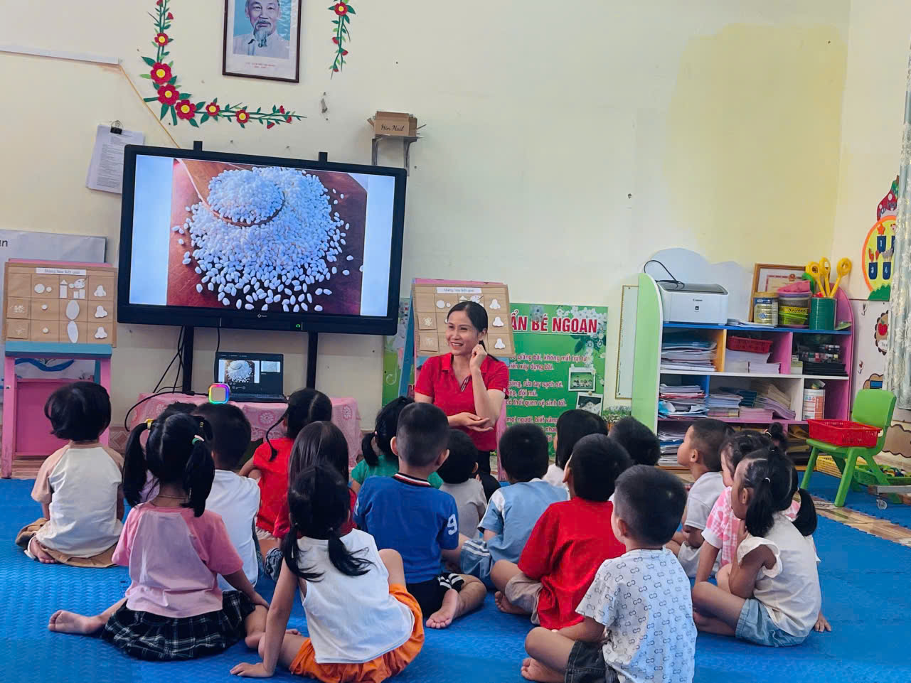 Hình ảnh: Hoạt động Khám phá Gạo nếp, gạo tẻ - Gv Trần Thị Chung (4-5 tuổi)