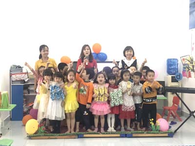 Tiết biểu diễn văn nghệ cuối chủ đề do cô giáo Đinh Thị Hoa dạy tại lớp mẫu giáo 5 tuổi.